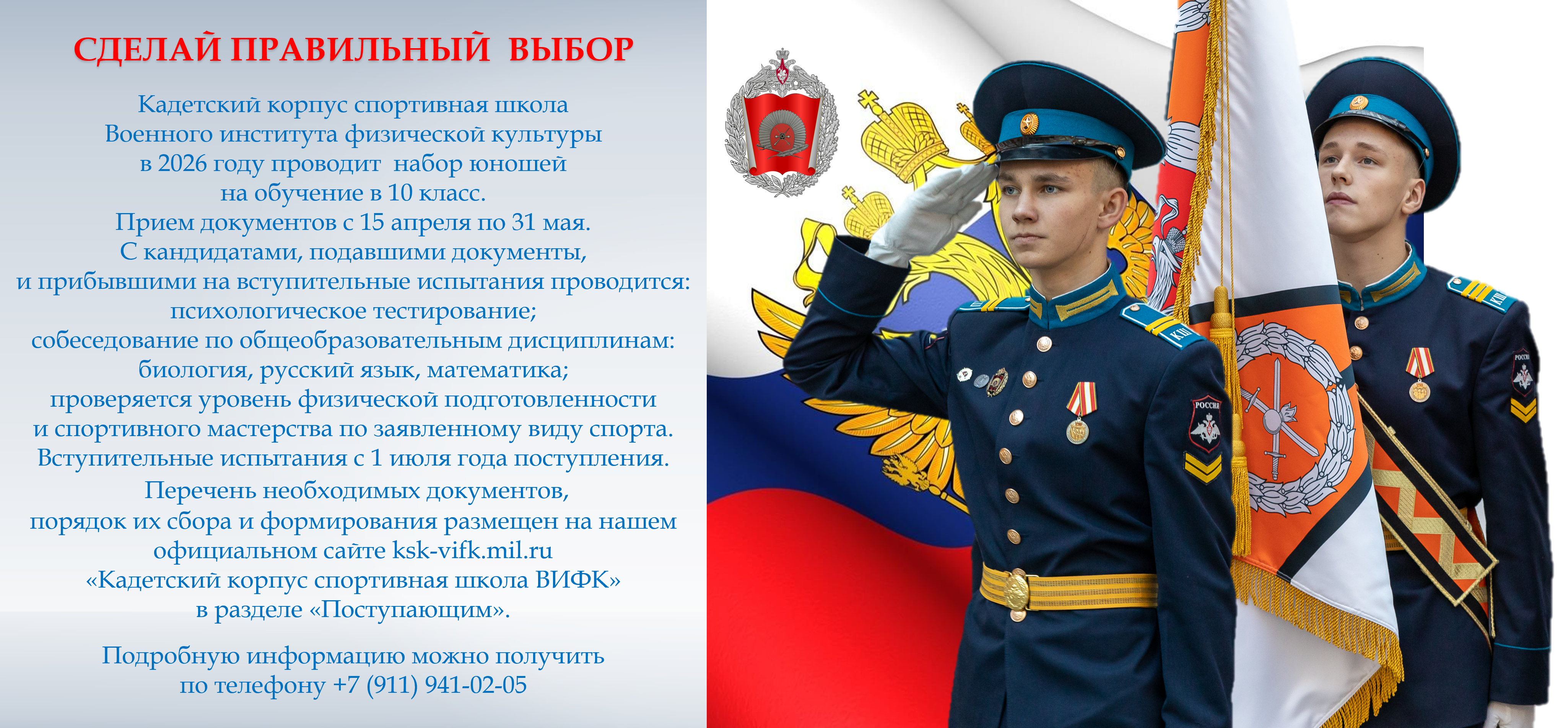 Набор юношей в Кадетский корпус спортивную школу Военного института физической культуры