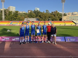 Поздравляем юношей 2012-2013гг.р.нашей спортшколы с третьим местом Всероссийских соревнований по легкоатлетическому четырехборью "Шиповка юных". 6-7 октября в г.Сочи воспитанники Притолюк М.А.- Виктор Самсонов, Игорь Самохин, Дмитрий Сергеев; тренера Беловой Е.А.- Александр Белов; тренера Будзан К.О.- Ярослав Моисеенко - состязались в упорной борьбе с многочисленными соперниками со всей России и добились отличного результата. Наши поздравления — спортсменам и их родителям, тренерам!!